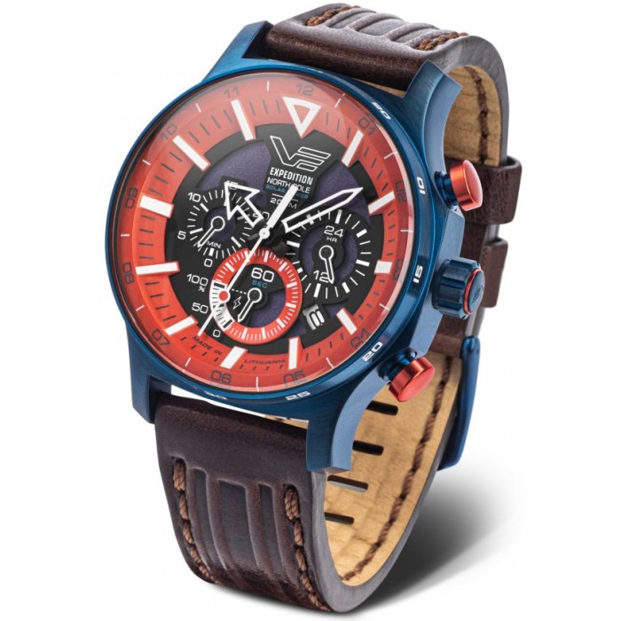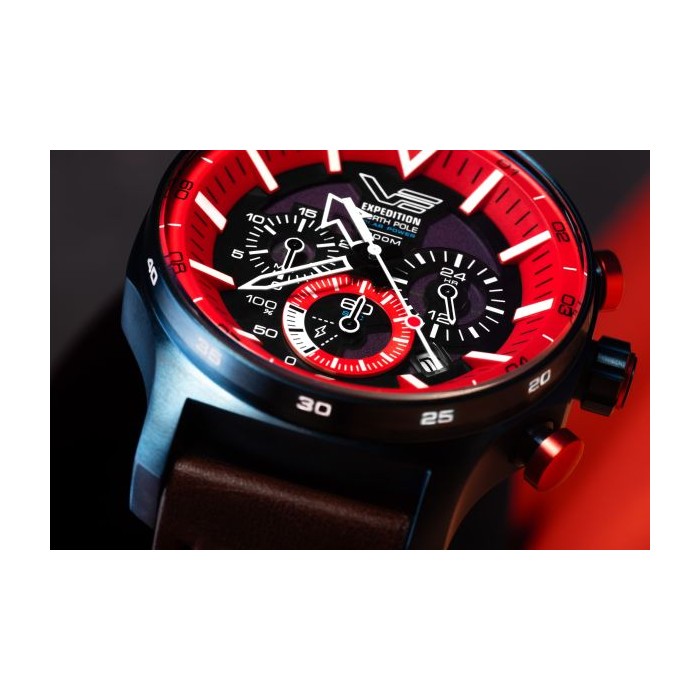 VOSTOK EUROPE VR42-595D734 to zegarek, który wyróżnia się solidną budową, doskonałym wykonaniem i nowoczesnym wyglądem, co sprawia, że jest idealnym wyborem dla osób ceniących zarówno niezawodność, jak i stylowy wygląd. Model ten został wyposażony w solarny mechanizm Seiko Epson VR42. Jego koperta jest zrobiona z hipoalergicznej stali szlachetnej, odpornej na działanie czynników atmosferycznych oraz korozję. Zegarek zamocowano na brązowym, skórzanym pasku, a dodatkowo w zestawie znajduje się sportowy pasek z czerwonego silikonu, który doskonale sprawdzi się podczas długich wypraw i pozwala na łatwą personalizację oraz dopasowanie zegarka do różnych stylizacji. Tarcza w czerwono-niebieskiej kolorystyce z wyraźnymi indeksami i wskazówkami zapewnia doskonałą czytelność, nawet w ciemności, a dodatkową ochronę zapewnia utwardzane szkło mineralne.