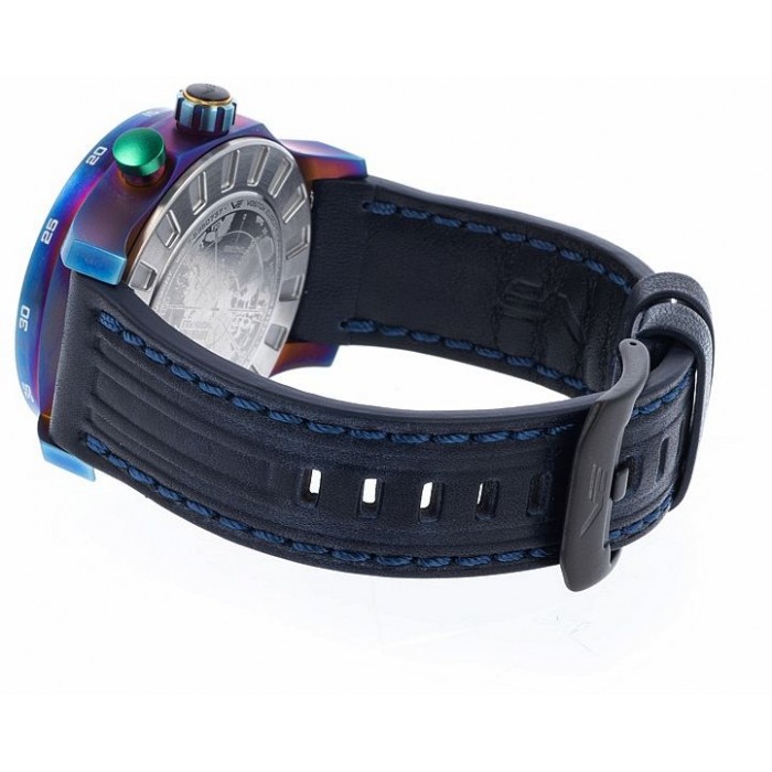 VOSTOK EUROPE VS57-595D737 to niezwykły i przykuwający wzrok model, zainspirowany fascynującym i efektowym zjawiskiem jakim jest Zorza Polarna. To niesamowite zjawisko można obserwować między innymi właśnie na biegunie północnym. Model zaprojektowany został tak, aby być niezawodnym w każdej sytuacji. Wyposażony jest mechanizm solarny. Wykorzystując energię słoneczną zapewnia wydłużony czas pracy, co doskonale sprawdzi się podczas długich wypraw. Koperta została wykonana z hipoalergicznej, odpornej na warunki atmosferyczne oraz korozję stali szlachetnej, pokrytej powłoką PVD w opalizującym fioletowym kolorze, który delikatnie zmienia się w zależności od kąta padania światła. Przywodzi to na myśl kolorowe światła tańczące na niebie podczas zorzy. Całość zawieszono na ciemnym, granatowym pasku wykonanym ze skóry naturalnej. Przydatnym elementem podczas długich wypraw jest dodatkowy, luminescencyjny pasek z wygodnego silikonu. Dzięki niemu zegarek bezie widoczny nawet w czasie całkowitych ciemności. Warto zwrócić uwagę na szkieletowaną czarno granatową tarczę, którą zabezpiecza utwardzone szkiełko mineralne typu K1.