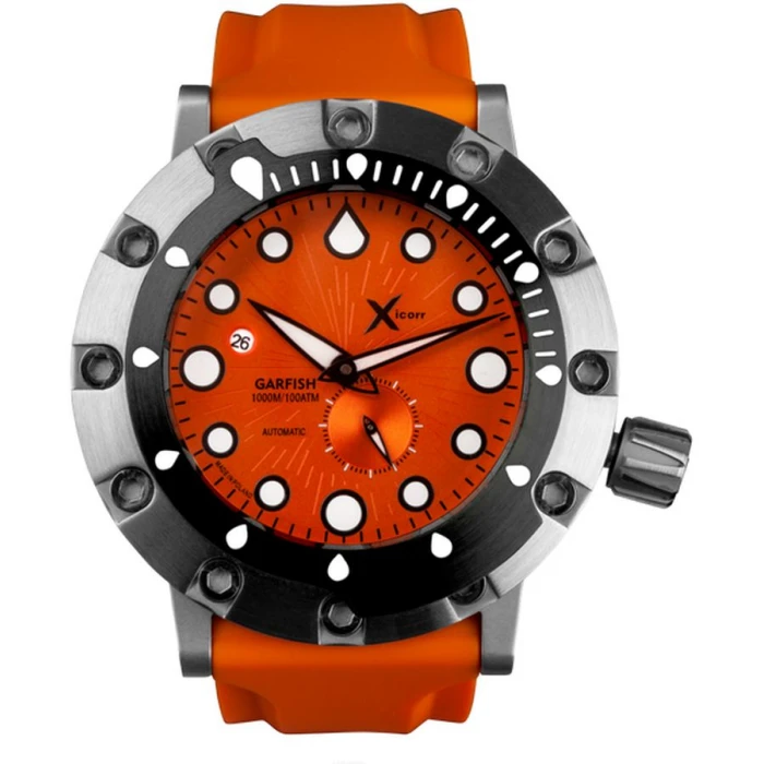 Klasa wodoszczelności XICORR GARFISH ORbk wynosi ekstremalne 100 ATM (WR1000m) oznacza to, że zegarek jest przystosowany do profesjonalnego nurkowania i długotrwałego przebywania pod wodą.