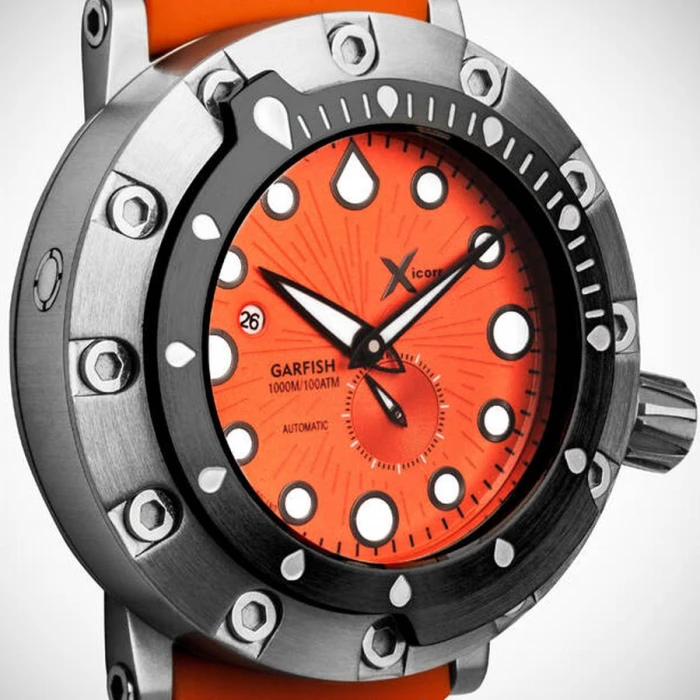 Zegarek XICORR GARFISH ORbk wyposażono w analogowe wskazanie czasu, dzięki temu odczyt jest prosty, co podczas nurkowania na znacznych głębokościach jest niezbędne. Znaczniki godzin oraz wskazówki pokryte zostały powłoką luminescencyjną, dzięki której możliwy jest odczyt w ciemności. Datownik wskazujący aktualny dzień miesiąca umieszczono na godzinie 9.30. Zakręcana koronka oraz dekiel dodatkowo zabezpieczają mechanizm przed dostaniem się wody. Ponad to model wyposażono w automatyczny zawór helowy schowany w kopercie. Każdy element czasomierza zaprojektowany został tak aby zegarek był funkcjonalny i dobrze widoczny w wodzie podczas nurkowania. Element dekla przyozdabia medalion z wygrawerowanymi informacjami oraz wizerunkiem Bellony na środku. Podkreśla to kunszt i sprawia, że zegarek jest nie tylko funkcjonalny ale też dopracowany wizualnie.