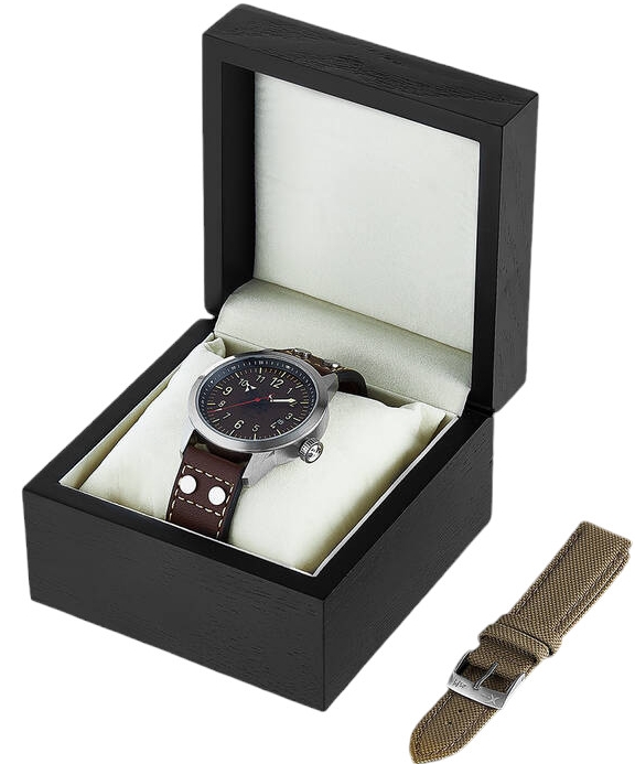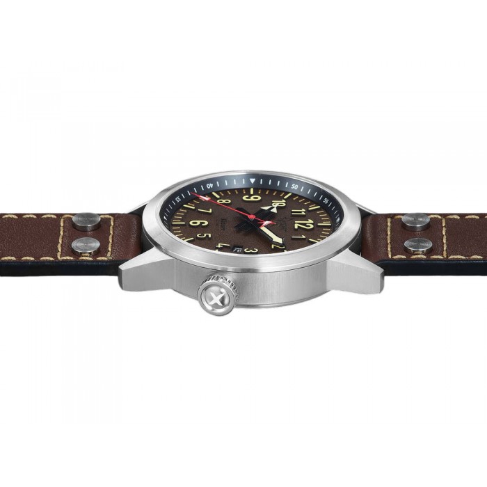 Tarczę chroni odporne na wszelkie zarysowania szkiełko szafirowe z wewnętrznym antyrefleksem a koperta została uszczelniona do poziomu 10 atmosfer (WR100) dzięki czemu z zegarkiem możemy wchodzić do wody i brać kąpiel bez obaw o zalanie mechanizmu. Spodnią część koperty wypełnia zakręcany, stalowy dekiel z wygrawerowanym Pilotem w kokpicie.