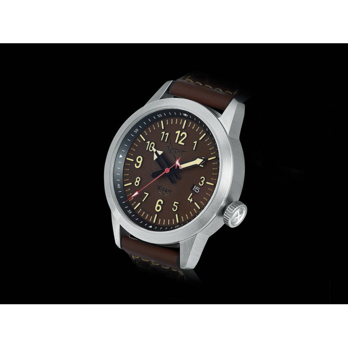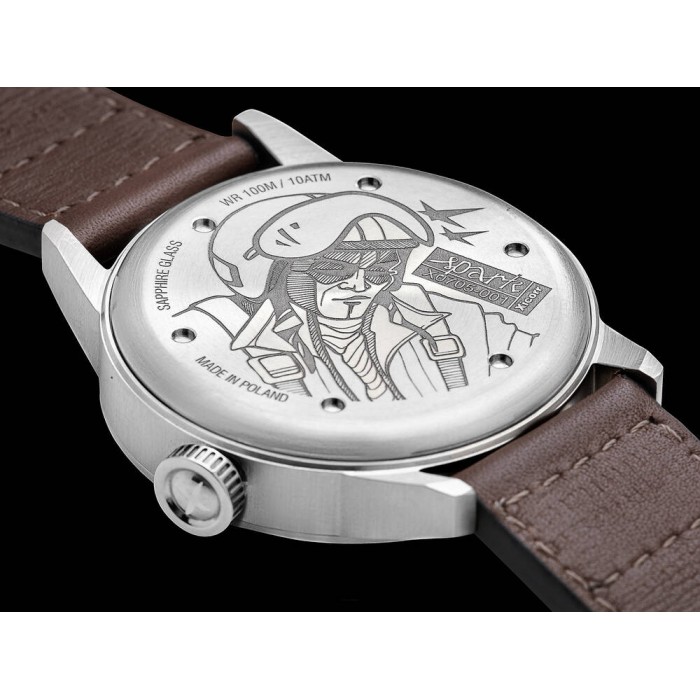 Uwagę zwraca klasyczna forma okrągłej koperty i układ koronki na wysokości godz. 15:30 co jest charakterystyczne w zegarkach tego polskiego producenta. Na tej samej wysokości znajdziemy okienko datownika wskazującego aktualny dzień miesiąca. Stylistyka tarczy o chropowatej powierzchni przypomina taflę lotnika na której osadzono wyraźne indeksy i cyfry poryte grubą warstwą lumy świecącą w ciemnościach.